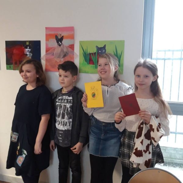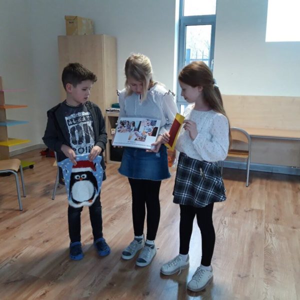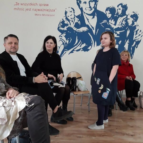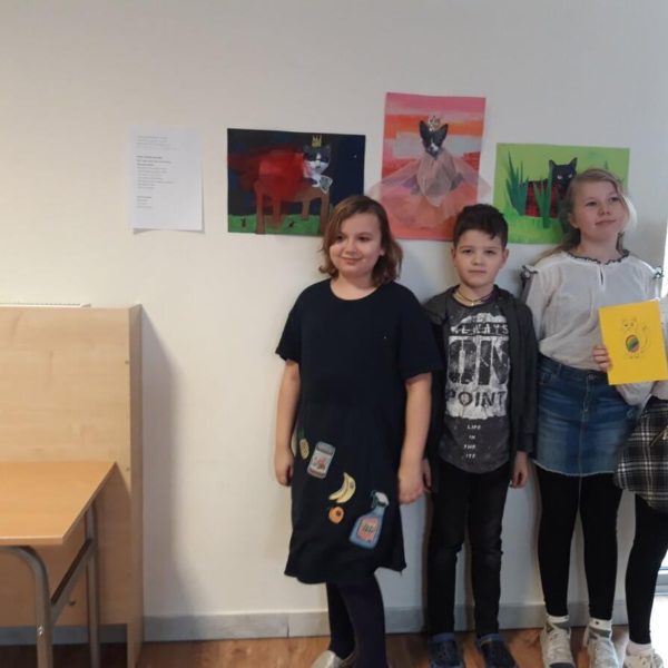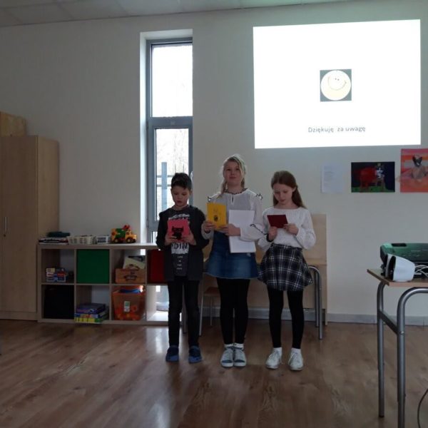 A czy wy już znacie odpowiedź? Kolejnymi osobami ze swoim projektem byli Gabrysia, Sonia i Olgierd. Uczniowie zaprojektowali i wykonali ubranka na chłodne dni dla swoich pupili a dokładnie kotów