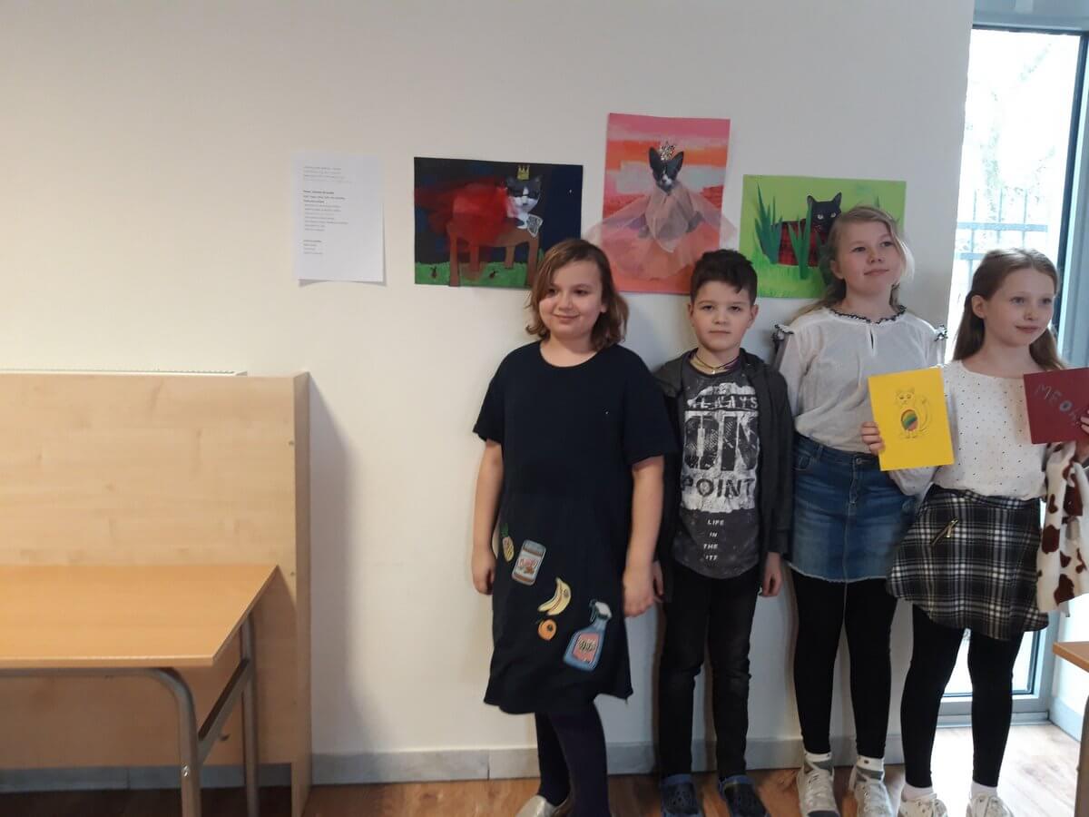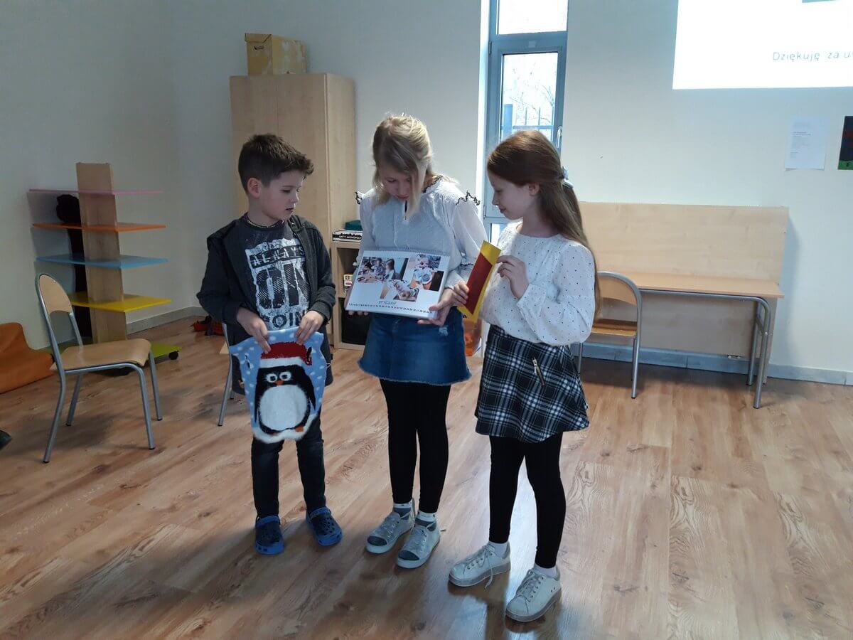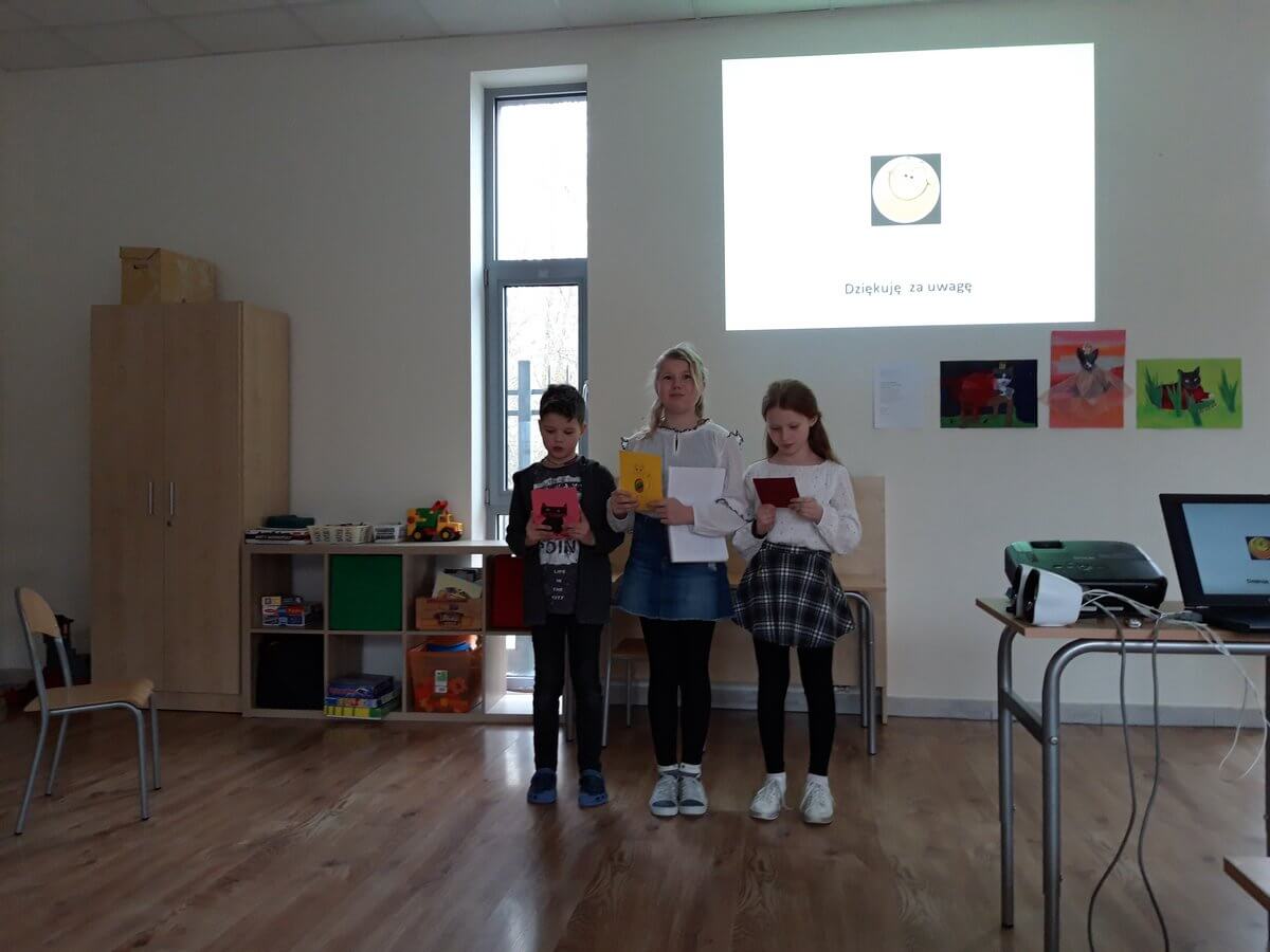 A czy wy już znacie odpowiedź? Kolejnymi osobami ze swoim projektem byli Gabrysia, Sonia i Olgierd. Uczniowie zaprojektowali i wykonali ubranka na chłodne dni dla swoich pupili a dokładnie kotów