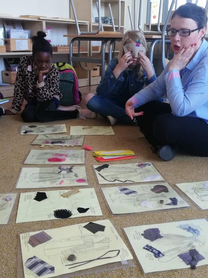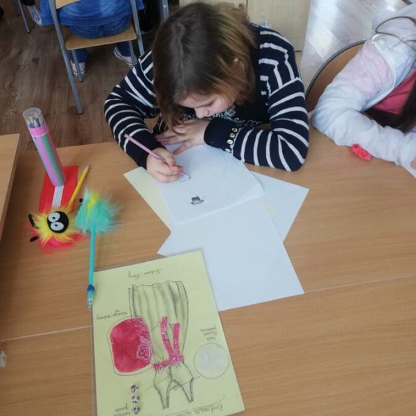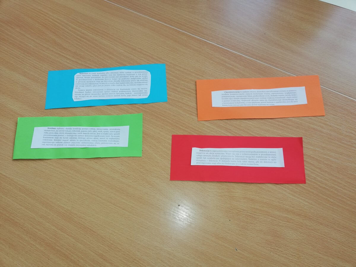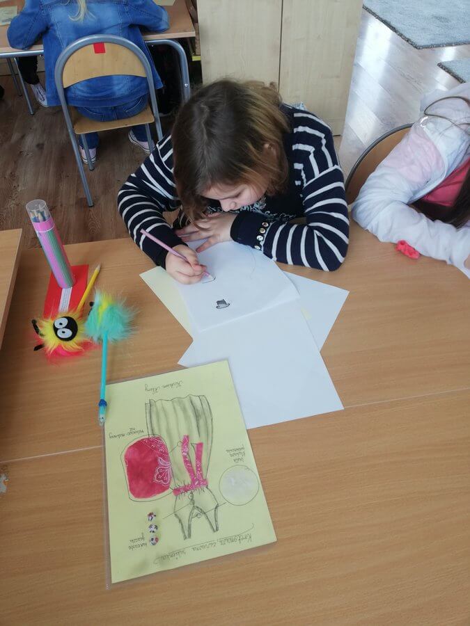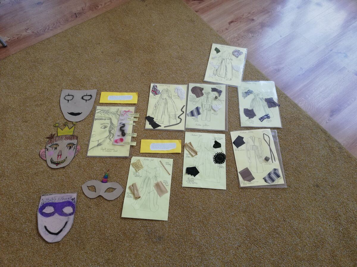 W ramach pracy nad projektem teatralnym uczniowie Poziomu 3 poznają zasady wykonywania kostiumów teatralnych i rekwizytów. Dowiadują się jaką rolę w spektaklu pełni pracownia scenograficzna i kostiumograficzna. Uczą się współpracować w zespołach, wspierać się, konsultować i opiniować.