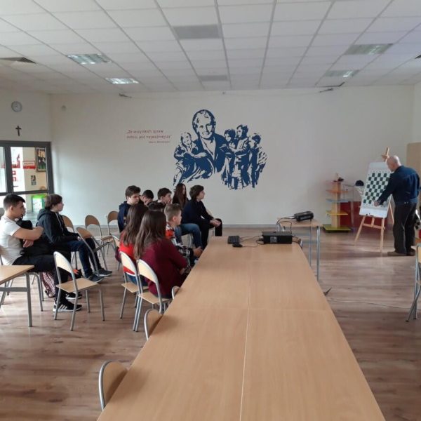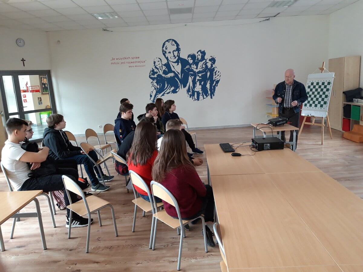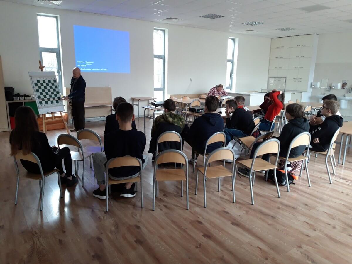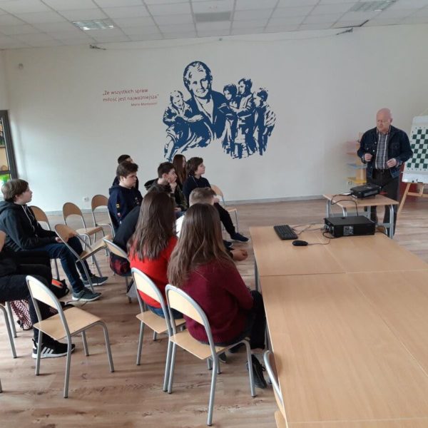 Warsztaty „szachowe” z uczniami poziomu 3 i 4, które cieszyły się ogromnym zainteresowaniem. Zajęcia poprowadził Pan Artur Chlebiński instruktor szachowy z licencją Ministerstwa Sportu, twórca programów do nauki gry w szachy. Wieloletni trener oraz sędzia szachowy.